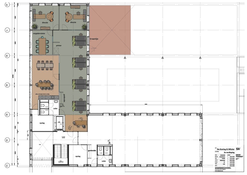 De kantoorruimte op de derde verdieping biedt ruimte aan 11 tot 17 werkplekken en wordt instapklaar opgeleverd met volwaardige plaza/kantine met luxe pantry, vergaderruimtes, directiekamers, berging en afgewerkte toiletten.